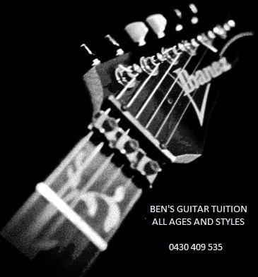 Hi, my name is Ben and I am based in the South-East suburbs of Melbourne.I offer one to one private tuition at a good price.I can cover many styles of music from rock to jazz and I caterto all ages, beginner to advanced. I can tailor each lesson to suit your style, playing ability and personal goals.Playing guitar is very rewarding and great fun and so are my lessons.Day and evening classes are available to guarantee a suitable time for anyone wanting to learn.Bookings: 0430 409 535