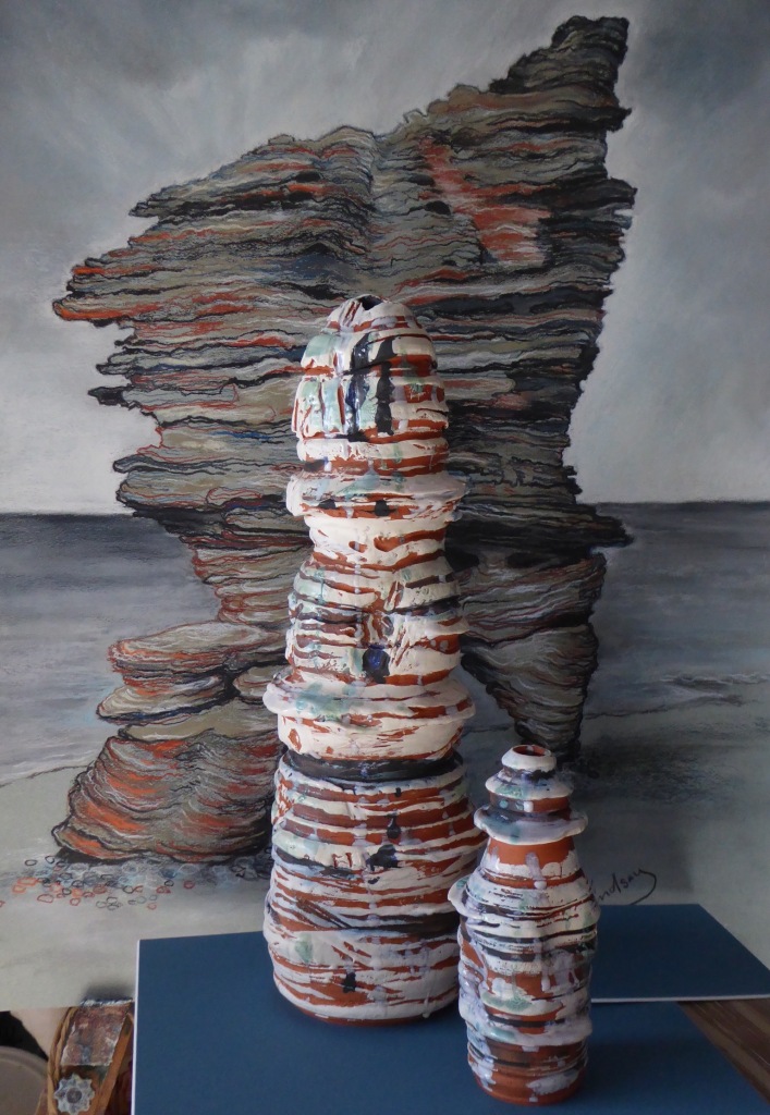 Graduate of Glasgow School of Art.I am mainly working on abstract paintings which are of mixed media on canvas with very textured surfaces. I enjoy layers of colour and try to achieve subtle variations using the surface beneath the paint. Light sources also influence my work and geology, such as roadside cuttings where the strata of the area is visible. I also enjoy foreign landscapes and lava formations have featured almost realistically in recent works.Recent pottery include Terracotta with white slip, carvings and texture.Commissions undertaken. Contact email [email protected]
