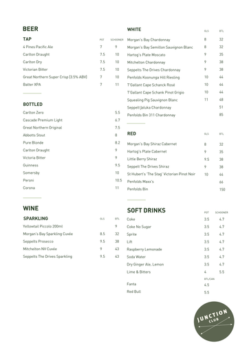 Junction Club, situation in the heart of Moonee Ponds, is a newly renovated classic pub with delicious bistro meals, a lively sports bar and entertainment.