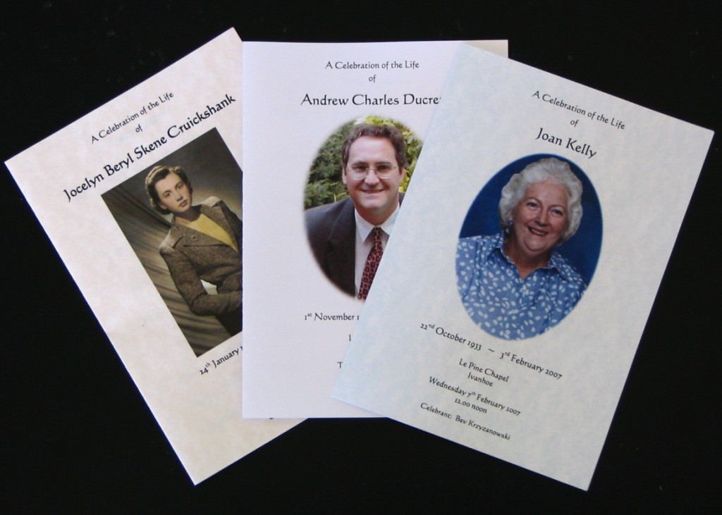 Baileys Computer Services have been providing high quality personalised printing and stationery for over 10 years.We specialise in Order of Service booklets, Memorial Cards, Bookmarks and Memorial DVDs for weddings and funerals.