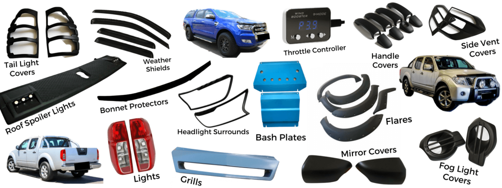 4wd | 4x4 | Roof Racks | Floor Mats | Spoilers | Bonnet | Bodykits | Light Bars | Side Steps | Side Skirts | Cold Air Intakes | Bonnet Protectors | Bonnet Scoop | Weather Shields | Wheel Flares
