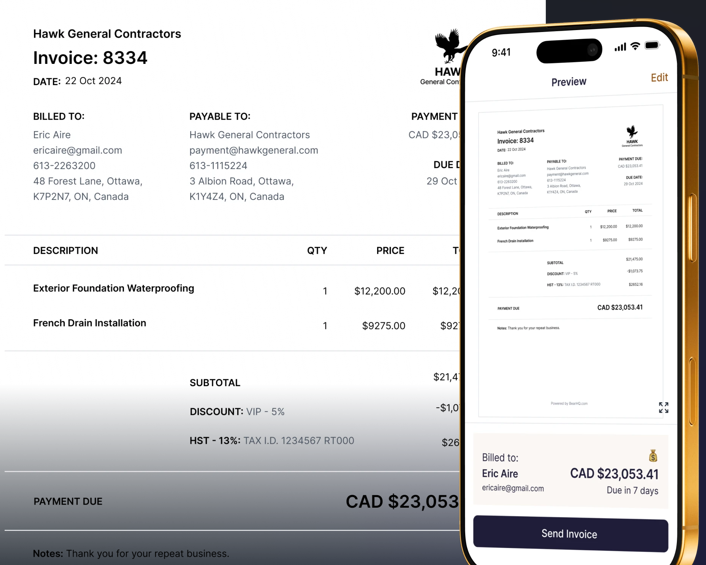 Invoice Bear is pro invoices, estimates & receipts in a few taps. We offer intelligent integration features, including a smart item library, accurate tax calculation, and real-time payment status tracking. This robust functionality is delivered through a phone-first interface, built for rapid, on-site use by service providers. You can easily generate and send professional invoices complete with automatic client reminders and instant payment links. This powerful automation streamlines your bookkeeping and consistently accelerates cash flow.